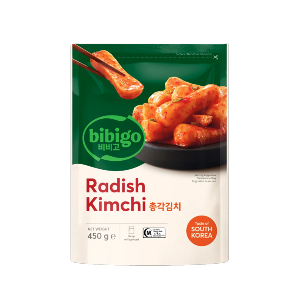 원재료명 : 절인 무 66.7%(무, 소금), 고추양념장 13.0% [물, 무, 고춧가루, 마늘, 양파, 생강, 향미증진제(글루타민산나트륨(E621)), 소금, 증점제(잔탄검) (E415))], 양파, 액젓(멸치, 물, 감미료(소르비톨(E420)), 소금, 새우, 향미증진제(글루타민산나트륨(E621)), 과당, 다시마추출물, 증점제(잔탄검(E415)) , 효모추출물), 증점제[물, 증점제(잔탄검(E415)), 천일염], 파, 종균배양물(대두펩톤), 산도조절제(유산칼슘(E327)), 조미분말[소금, 산도조절제 (유산칼슘(E327), 글루코노-델타-락톤(E575), 구연산(E330)), 유산균발효분말, 인공향료].