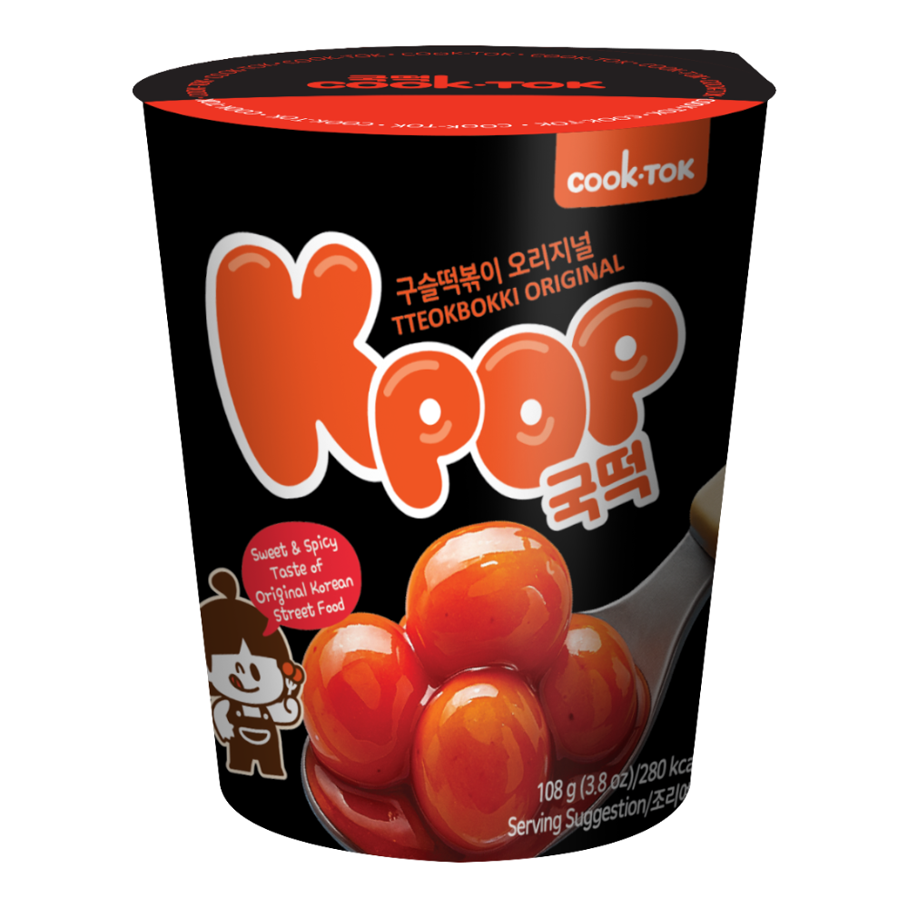 COOKTOK Instant Cup Ball Tteokbokki, Original (Hot & Sweet) 108g