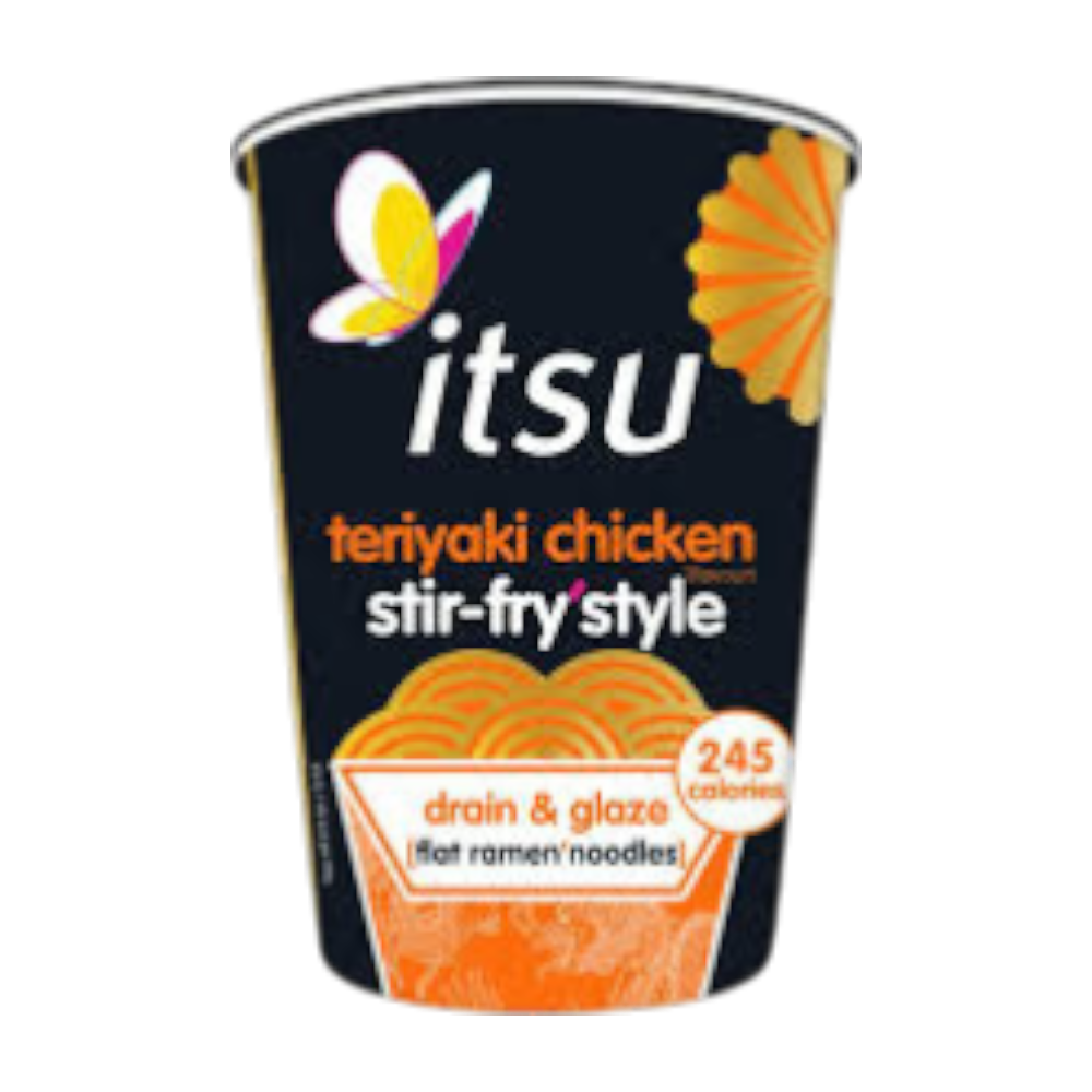 Ingredients List: Rice Noodles (61%) (Rice, Tapioca Starch, Cornflour, Emulsifier: Mono And Diglycerides Of Fatty Acids*), Glaze (37%) (Soy Sauce (30%) [Water, Soya Beans, Wheat, Salt, Alcohol], Mirin [Fermented Rice, Water, Maltose, Alcohol], Onion Puree, Sesame Oil (9%), Muscovado Sugar, Sugar, Cornflour, Vegetable Flavour Stock Powder [Maltodextrin, Natural Flavouring, Yeast Extract, Salt, Sugar, Onion Powder], Ginger Puree, Malt Extract (Barley), Yeast Extract, Rice Vinegar, Garlic Powder, Ginger Powder, Shiitake Powder [Dextrin, Shiitake Extract], Water), Dried Spring Onion.