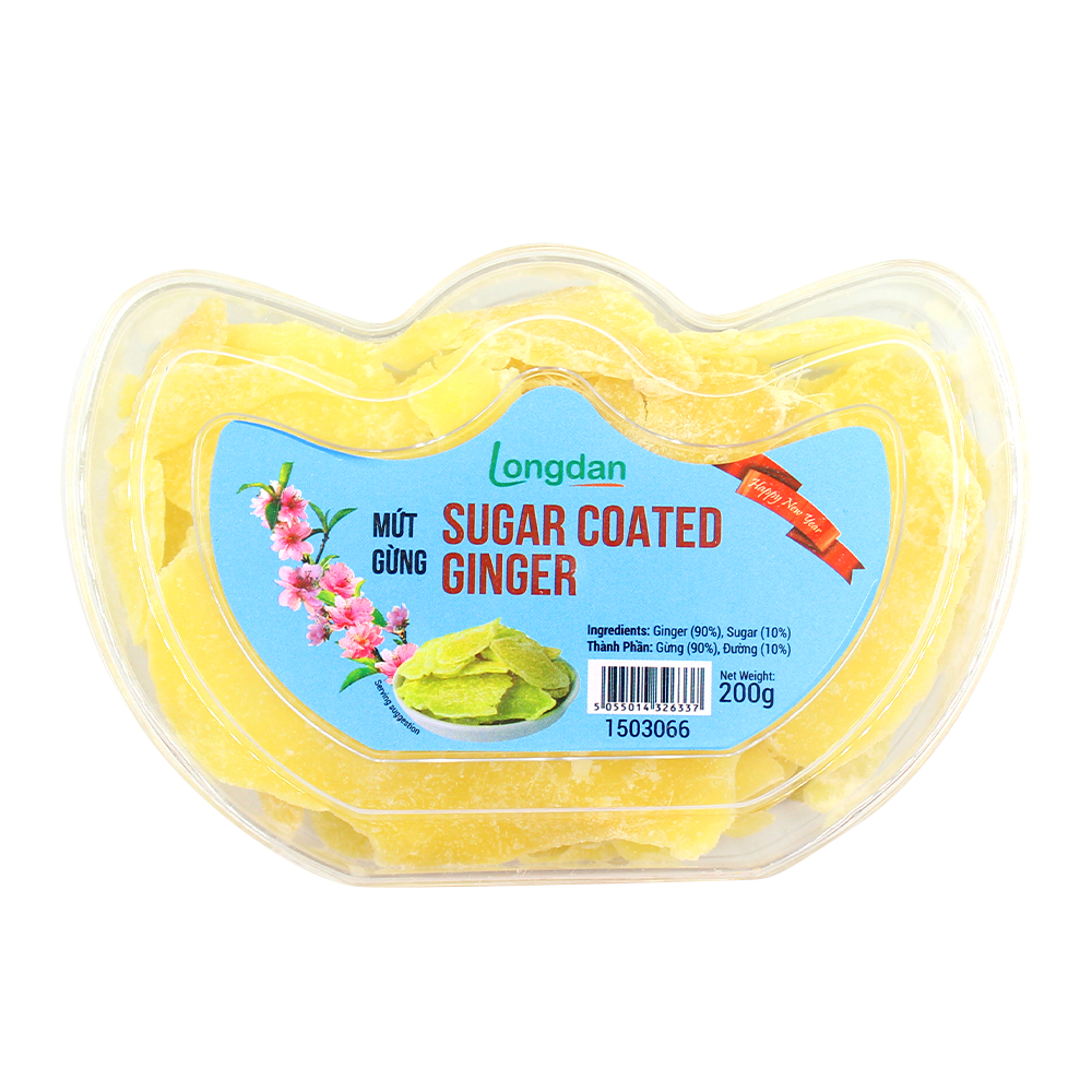 รายการส่วนผสม: ขิง (90%), น้ำตาล (10%)