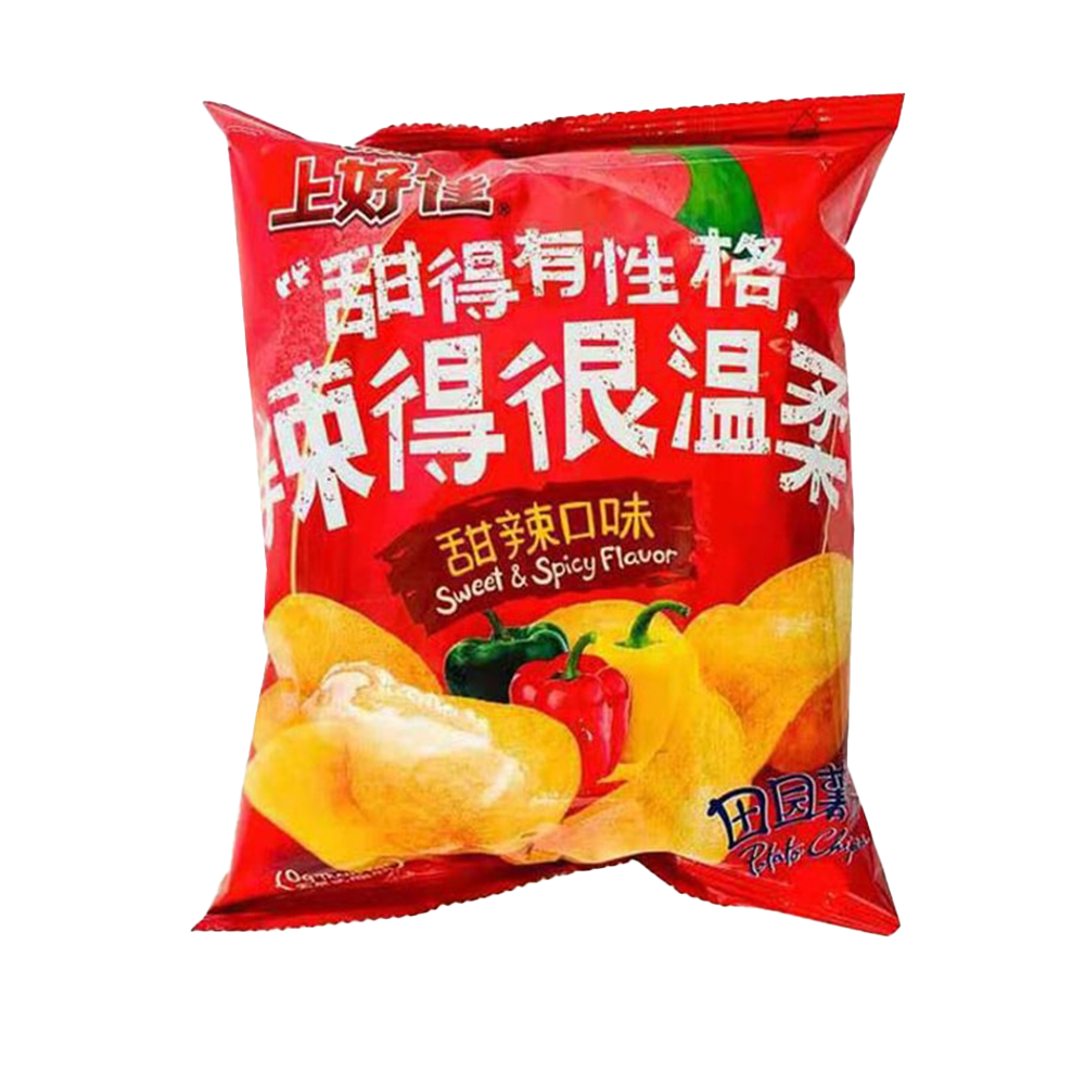 รายการส่วนผสม: มันฝรั่ง 94%, น้ำมันพืช (น้ำมันปาล์ม), เครื่องปรุงรสแบบผสม (น้ำตาลทรายขาว, รสมันฝรั่ง, ผงซีอิ๊ว, แคลเซียมคาร์บอเนต (E170), เครื่องเทศ (หัวหอม, กระเทียม, พริกไทย), ผงน้ำส้มสายชู, นิวคลีโอไทด์ 5°-Taste ไดโซเดียม (E635), สารสกัดจากยีสต์, แคปแซนธิน, สตีวิออลไกลโคไซด์ (E960))