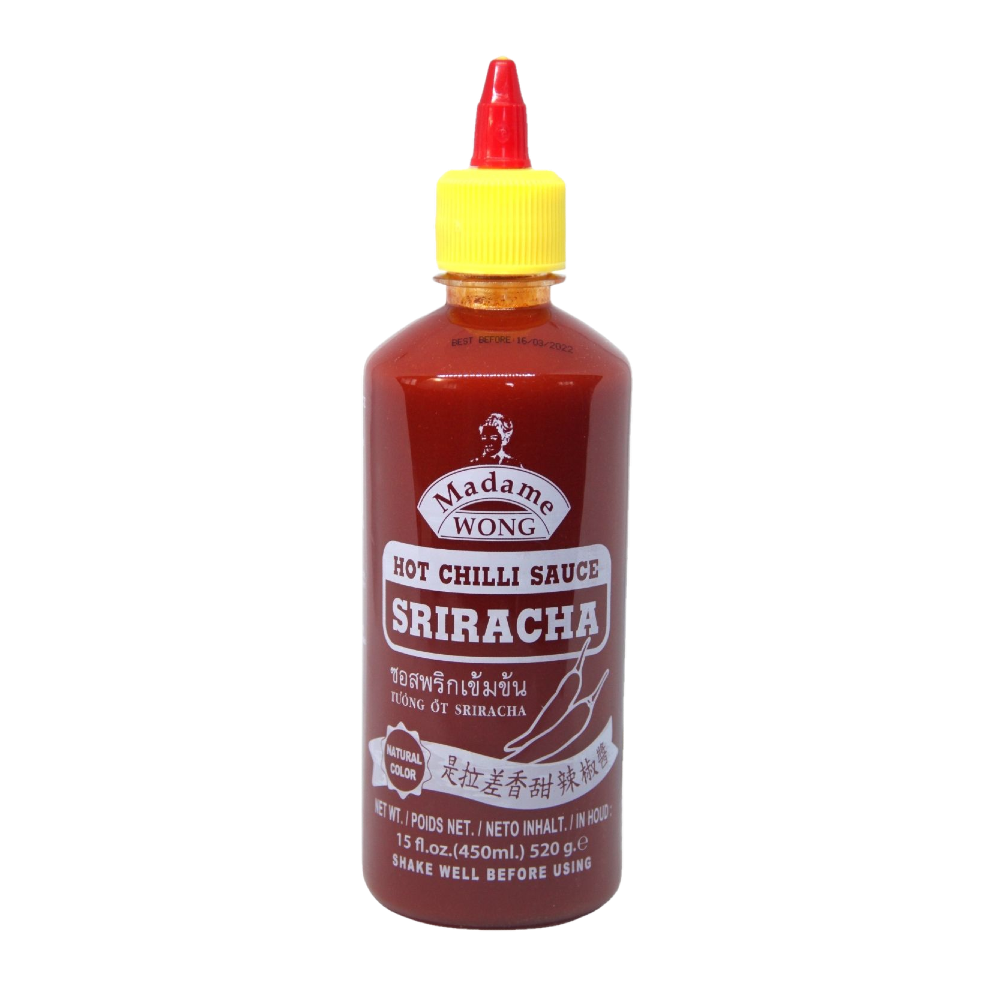Danh sách các nguyên liệu thành phần: Ớt tươi 55%, Đường, Nước, Tỏi, Tinh bột sắn biến tính, Axit axetic E260, Muối, Chất điều vị: E621 Monosodium Glutamate, E330 Citric Acid, E415 Xanthan Gum, Chất bảo quản: E202 Kali Sorbate, Màu tự nhiên, Ớt bột.